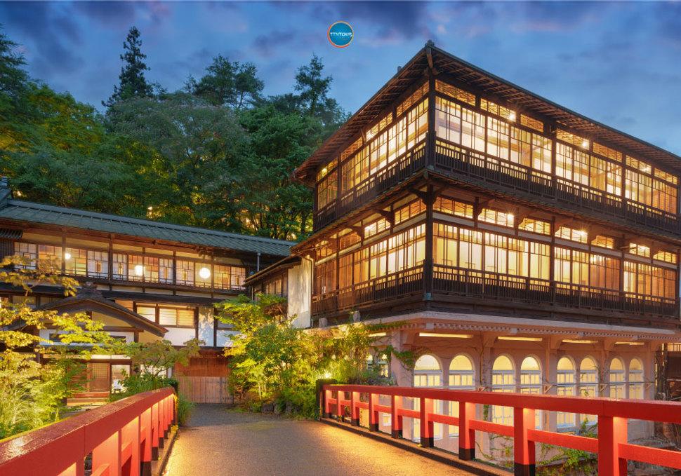 จุดที่ห้ามพลาดคือการเข้าพักที่ เรียวกังเซคิเซ็นคัง (Sekizenkan Ryokan) ที่พักเก่าแก่ หลายคนเชื่อว่าเป็นแรงบันดาลใจของโรงอาบน้ำใน Spirited Away ด้วยสถาปัตยกรรมไม้แบบญี่ปุ่นโบราณ บรรยากาศอบอุ่น ล้อมรอบด้วยธรรมชาติของหุบเขา และสะพานสีแดงที่เป็นมุมถ่ายรูปยอดนิยมที่สุดของเมือง