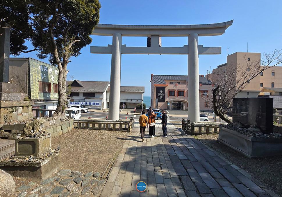 การเดินทาง จากสถานี Tokyo นั่งรถไฟไปสถานี Mito เปลี่ยนเป็นรถไฟ local ลงสถานี Oarai ต่อรถบัสลงป้าย Oarai Isosaki Jinjamae