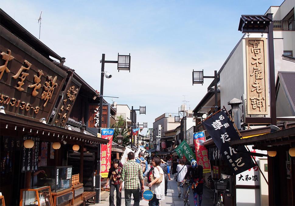 จากสถานีเพียงเดินไม่กี่นาทีจะถึงถนนสายหลักของย่าน ที่สองฝั่งเต็มไปด้วยร้านขนม ร้านอาหาร และของฝากสไตล์ญี่ปุ่นแบบเก่า บรรยากาศเรียบง่ายแต่มีชีวิตชีวา โดยเฉพาะกลิ่นขนมเซมเบะที่ย่างบนเตา และขนมดังโงะหลากรสที่น่าลองสุดๆ เดินเพลินถ่ายรูปก็สวย แวะชิมขนมก็อร่อย ยิ่งถ้าใส่ชุดยูกาตะเดินเล่นจะได้ฟีลย้อนยุคสุดๆ เหมือนหลุดไปอยู่ในหนังญี่ปุ่นเก่าเลยทีเดียว