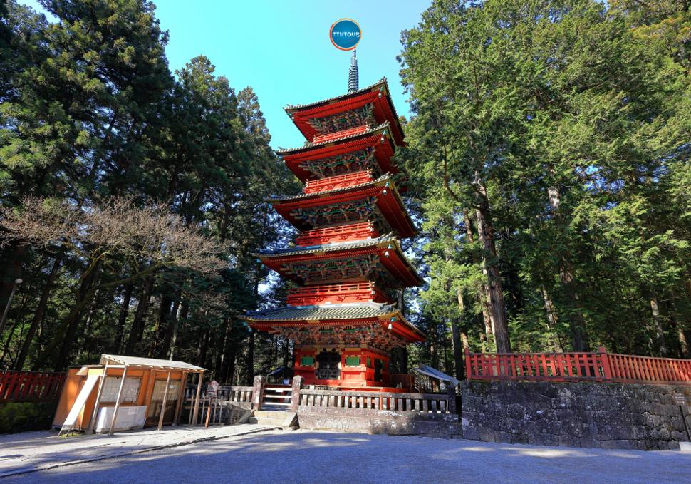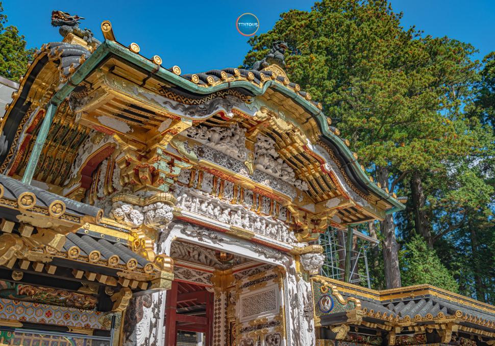 ประตูโยเมมง (Yomeimon Gate) ที่เป็นเหมือนสัญลักษณ์ของศาลเจ้านิกโก้และได้รับการยกย่องว่าเป็นหนึ่งในประตูที่สวยที่สุดในญี่ปุ่น เต็มไปด้วยลวดลายแกะสลักกว่า 500 ชิ้น และ เจดีย์ห้าชั้น สีสันสวยงามตั้งตระหง่านอยู่ท่ามกลางผืนป่า เจดีย์ถูกสร้างด้วยไม้ทั้งหลังและสูงถึง 36 เมตร