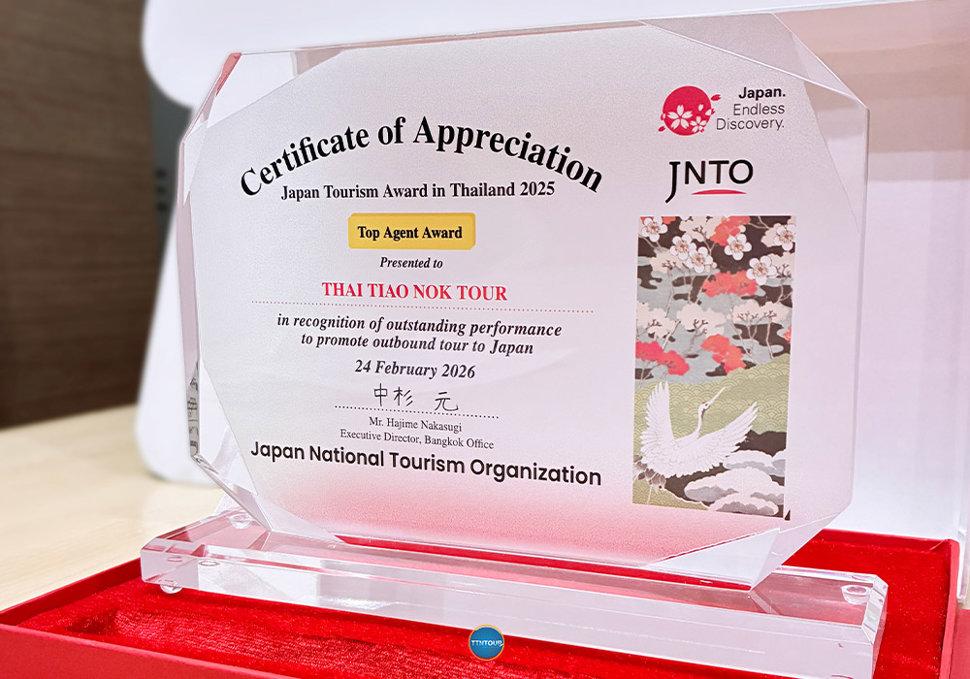 บริษัท ไทยเที่ยวนอก ทัวร์ จำกัด (TTN TOUR) เข้ารับรางวัล Japan Tourism Award in Thailand 2025 จากองค์การส่งเสริมการท่องเที่ยวแห่งประเทศญี่ปุ่น (JNTO) ณ ทำเนียบเอกอัครราชทูตญี่ปุ่น เมื่อวันที่ 24 กุมภาพันธ์ 2026 โดยมีวัตถุประสงค์เพื่อเชิดชูเกียรติพันธมิตรที่มีบทบาทสำคัญในการผลักดันอุตสาหกรรมการท่องเที่ยวญี่ปุ่นในประเทศไทย