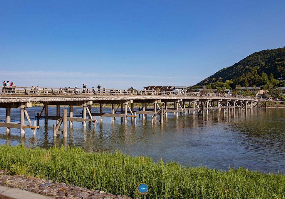 สะพานโทเก็ตสึเคียว มีความยาว 250 เมตร เป็นสะพานข้ามแม่น้ำคัตสึระว่า โดยยังคงลักษณะเหมือนในคริสต์ศตวรรษที่ 17 แม้จะบูรณะใหม่ด้วยเหล็กแล้วก็ตาม มีฉากหลังเป็นภูเขาอาราชิยามะที่เปลี่ยนสีตามฤดูกาล เป็นจุดพักสายตาที่ทำให้เราสัมผัสได้ถึงความยิ่งใหญ่ของธรรมชาติได้ดีที่สุด บริเวณรอบๆ เต็มไปด้วยร้านคาเฟ่และร้านขายของที่ระลึกที่ได้รับการรีโนเวทใหม่ให้ดูทันสมัยแต่ยังคงกลิ่นอายดั้งเดิมได้อย่างกลมกลืน เรียกได้ว่าเป็นจุดเช็กอินที่รวมความชิลและความสวยงามไว้ในที่เดียว